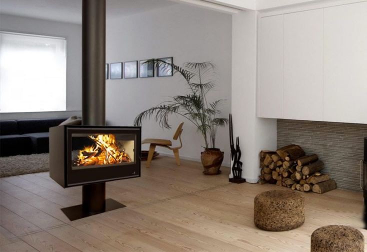 Le poêle à bois de chez Termofoc est doté de deux vitres de part et d’autre de l’insert, ce qui lui confère un design épuré et élégant. Il mesure 89,9 cm de long par 56,5 cm de large, pour 55 cm de haut.